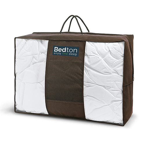 V době kdy není polštář využíván, je nutné jej skladovat v prodyšné transportní tašce aby byl zajištěn přísun vzduchu. Polštář proto dodáváme v prodyšné textilní tašce s úchyty pro bezpečný transport nebo uskladnění. Rozměr tašky je 60x40x25 cm a gramáž látky je 115 g/m². Taška je k přikrývce zdarma.