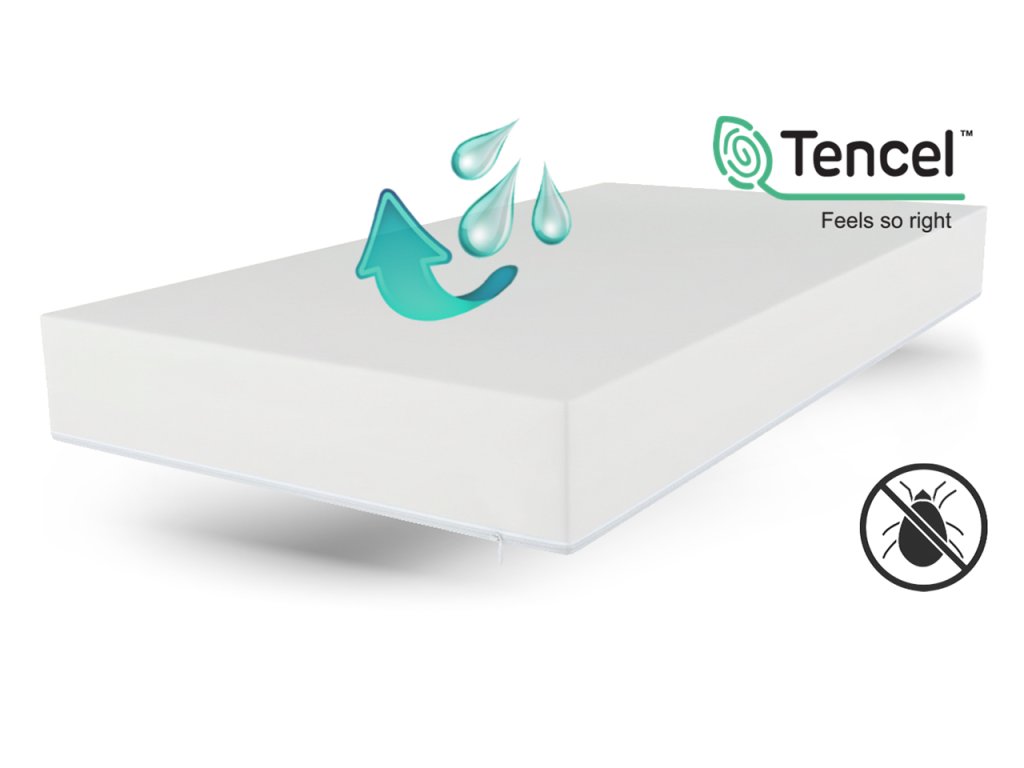 - složení: lehací plocha 100% Tencel, boky 100% Tencel, nepropustná membrána 100% PU 25 g/m²