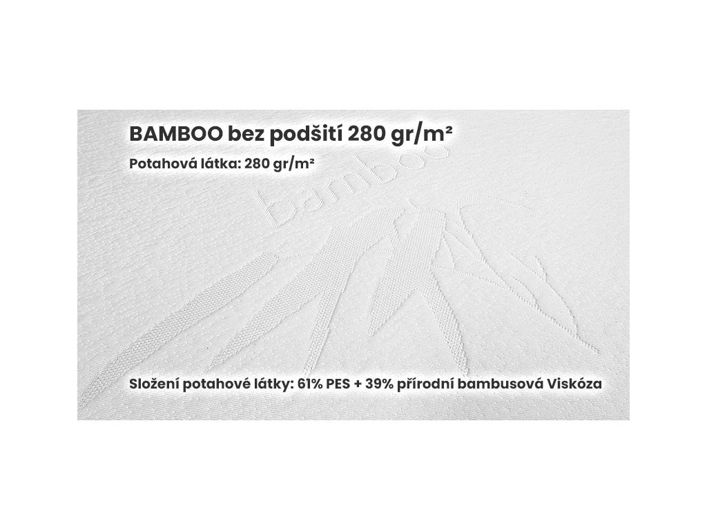 V základní ceně matrace je potah BAMBOO. Zip kolem celého obvodu nabídne rozdělení potahu na dvě samostatné poloviny a prát lze tak jen používanou polovinu. Snadněji se s rozděleným potahem manipuluje a rychleji schne. Všechny potahy jsou pratelné na 60°C. Přesné složení potahů a jejich vlastnosti se dozvíte buď v galerii fotografií potahů v horní části pod popisem matrace nebo pak v záložce JAK VYBRAT POTAH.