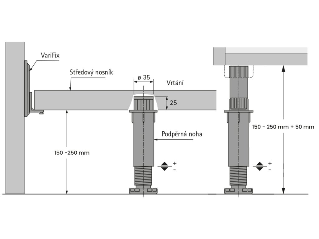 - Montáž zasunutím do otvoru ve středovém nosníku