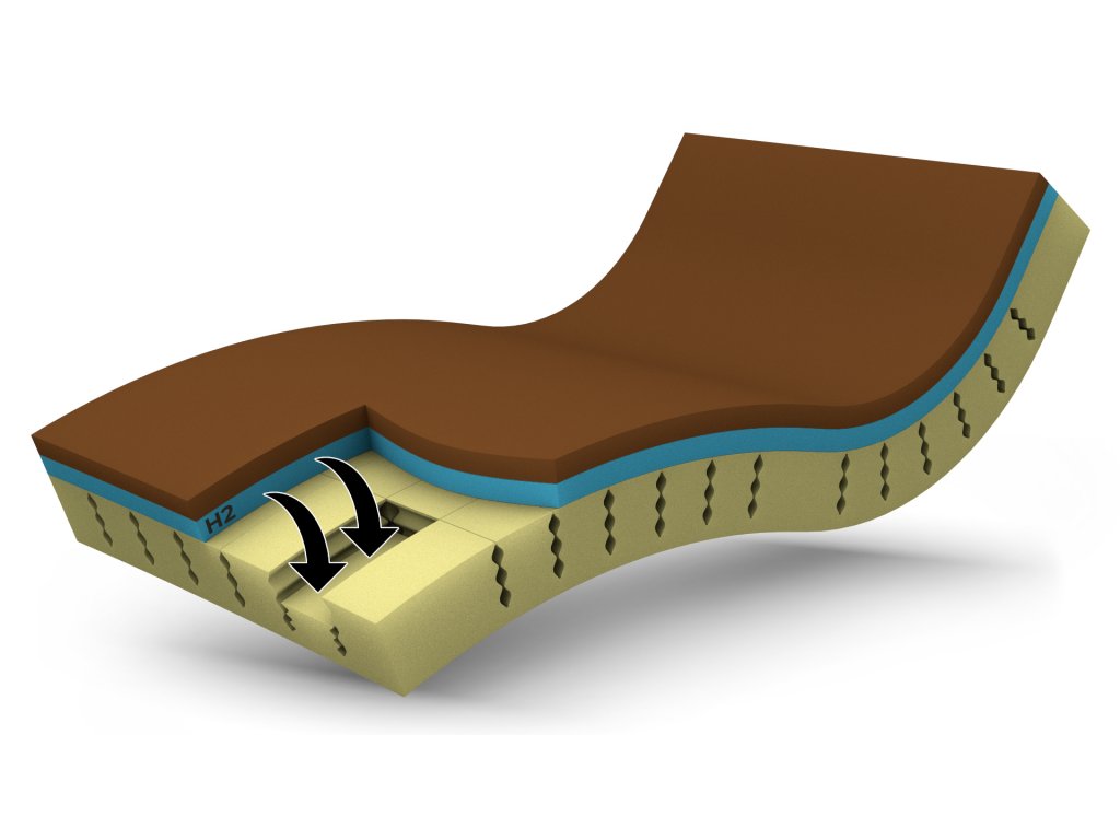 Sedmi-zónový prořez průduchů ve spodní části jádra se optimálně přizpůsobí tvaru lidské postavy a okopíruje její přirozenou křivku podle tvaru páteře. Technologie sestavení je za pomoci švýcarského ekologického lepidla na vodní bázi značky SIMALFA®. Matraci lze umístit na desku (případně podlahu), laťkový rošt bez polohování i s polohováním a lamelový rošt bez polohování i s polohováním. Pro zachování co nejdelší životnosti doporučujeme použit kvalitní lamelový rošt a matracový chránič. Na přání vyrobíme jakýkoliv atypický rozměr.