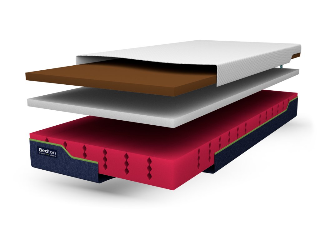 Horní kontaktní vrstvou je unikátní značková německá studená pěna XDURA® od EUROFOAME® o objemové hmotnosti 50 kg/m³. Tato unikátní studená pěna XDURA® reguluje svou prodyšností teplotu během Vašeho spánku a zajišťuje tak vždy optimální tepelný komfort svého uživatele. Další vrstvu tvoří značková paměťová pěna VITAFOAM® o objemové hmotnosti 50 kg/m³. Nosnou spodní část tvoří značková studená pěna CARPENTER® o objemové hmotnosti 50 kg/m³.