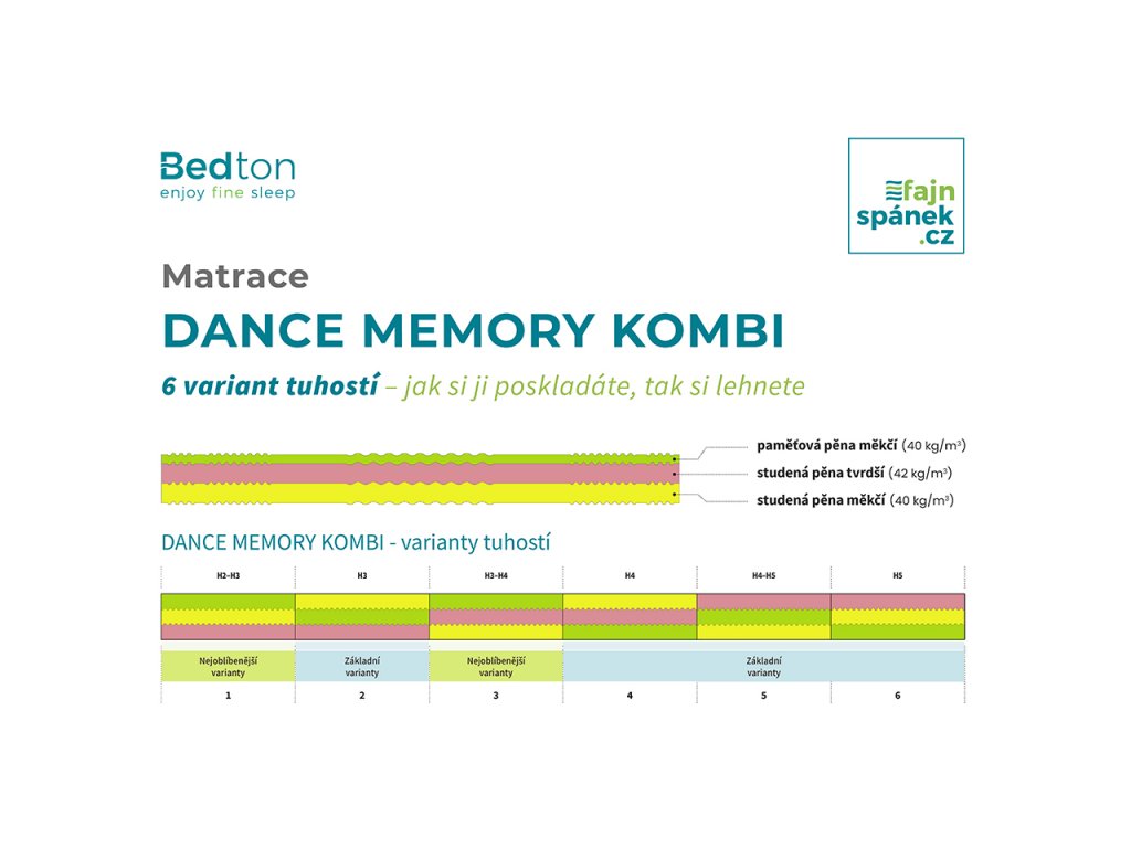 DANCE MEMORY KOMBI • 6 tuhostí v jedné matraci H2 až H5